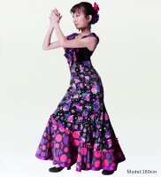 トップ > 【フラメンコ総合 ファルダ・ブラウスetc.】 > ワンピース・セットアップ > Mサイズ フラメンコ 胸元フリル ベルベット×コシボ ワンピース パープル×ブラック 2443pubkF