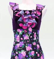 Mサイズ フラメンコ 胸元フリル ベルベット×コシボ ワンピース パープル×ブラック 2443pubkF