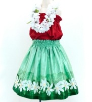 ケイキ フラダンス シャンタン パウスカート ティアレ×カヒコ グリーン 90-150サイズ Jp100gr