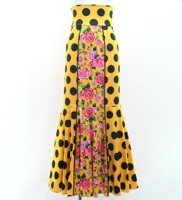 S-Lサイズ フラメンコ ハイウエストマーメイドスカート 飾りあり 水玉×ローズ イエロー FS-51