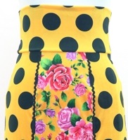 トップ > 在庫切れの心配無!フラメンコラグジュアリーコレクション > ファルダ > S-Lサイズ フラメンコ ハイウエストマーメイドスカート 飾りあり 水玉×ローズ イエロー FS-51