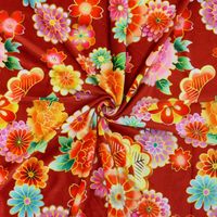 和柄生地 菊&牡丹&松柄 選べる生地 レッド(赤) WA-001-RD