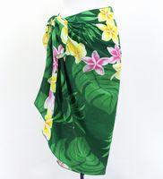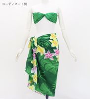 オリジナルプリントコシボ生地 ショート パレオ プルメリアレイ グリーン J3225-6