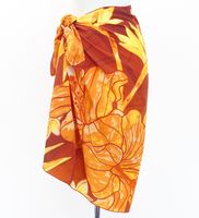 オリジナルプリントコシボ生地 ショート パレオ ハイビスカス オレンジ J3225-14