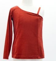 ケイキ フラダンス ワンショルダー ロングスリーブ ベロアブラウス ダークレッド2 120・140サイズ Jp200drd2