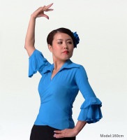 トップ > 【フラメンコ総合 ファルダ・ブラウスetc.】 > ブラウス > Mサイズ フラメンコ カシュクールブラウス ブルー 2480blF