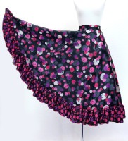 S-Lサイズ フラメンコ フリル ロングサーキュラースカート ローズ×水玉 ブラック×ピンク FS-13