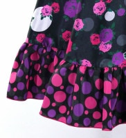 emikaオリジナルプリントのつやのあるシャンタン生地を使用したフリルファルダです。