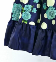 S-Lサイズ フラメンコ フリル ロングサーキュラースカート ローズ×水玉 ブルー&ネイビー FS-19