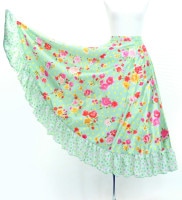 S-Lサイズ フラメンコ フリル ロングサーキュラースカート ローズ&カーネーション ライトグリーン FS-22