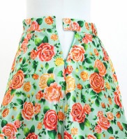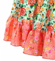 emikaオリジナルプリントのつやのあるシャンタン生地を使用したフリルファルダです。