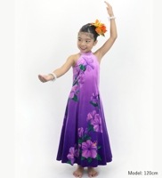ケイキ 【ロング丈】 フラドレス アメリカンスリーブ ハイビスカス ラベンダー×パープル 120・140サイズ Jp123lvpu