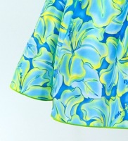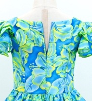 トップ > すべての商品 > ケイキ 【ミディ丈】 フラドレス 3段フリルスリーブ ハイビスカス ブルー×イエローグリーン 120・140サイズ Jp128blyegr