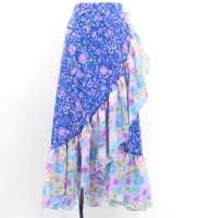 Fサイズ フラメンコ 巻きスカート ローズペイズリー×水彩風花柄 ブルー×ピンク FMS-13