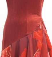 トップス部分は伸縮性・高級感のあるストレッチベロア生地、 スカート部分はコシボ生地を使用しました。