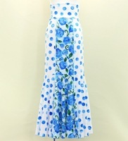 S-Lサイズ フラメンコ ハイウエストマーメイドスカート 飾りあり 水玉×ローズ ホワイト×ブルー FS-54